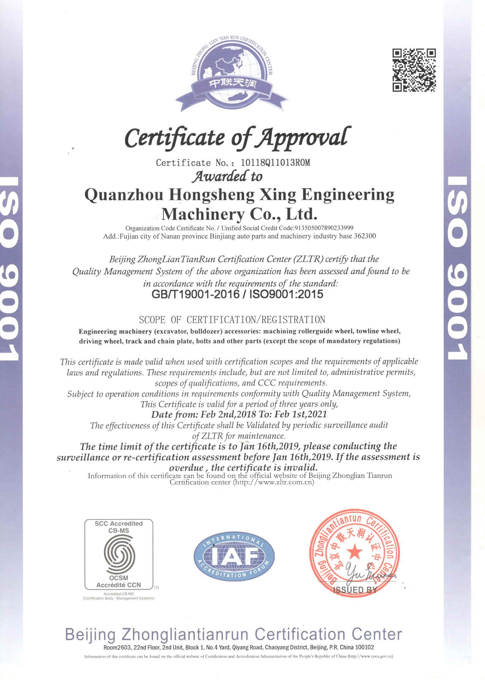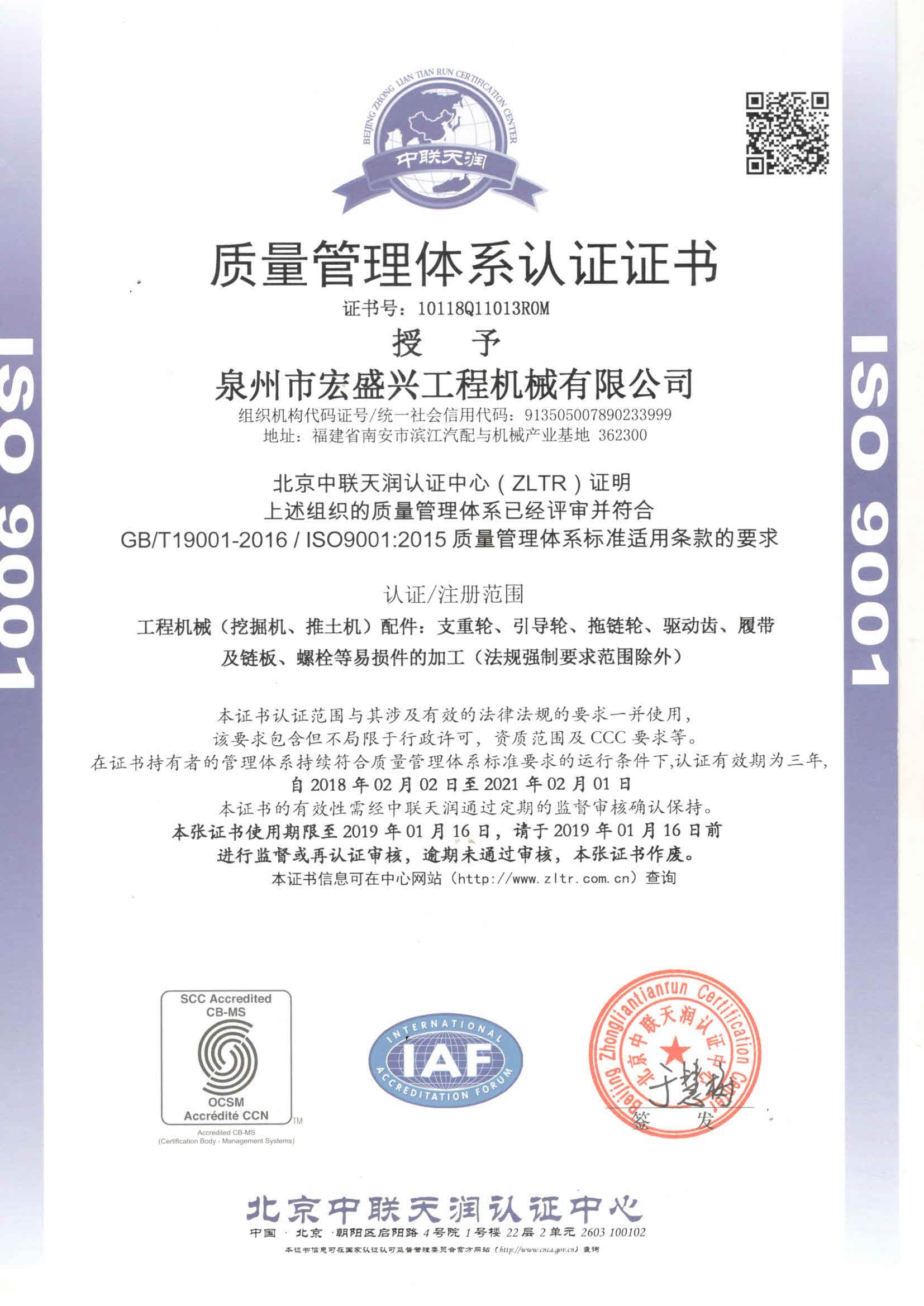 質(zhì)量管理體系認(rèn)證證書(shū)